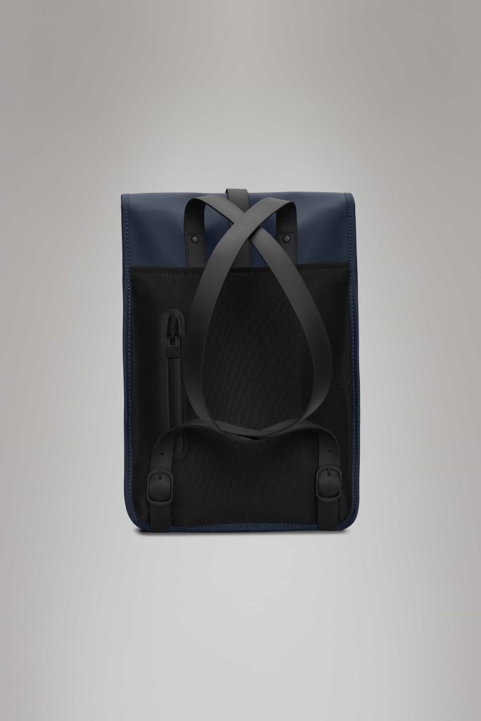 Backpack Mini es la versión reducida del modelo Backpack. Su silueta cuadrada y solapa con cierre magnético le dan un estilo limpio y moderno. Incluye un compartimento principal espacioso, un bolsillo interior con cremallera y un bolsillo externo oculto en el panel trasero. El compartimento para portátil acomoda un modelo de hasta 13″ con funda, ideal para desplazamientos urbanos. Fabricada con el tejido PU exclusivo de Rains, combina resistencia, ligereza y un acabado suave.