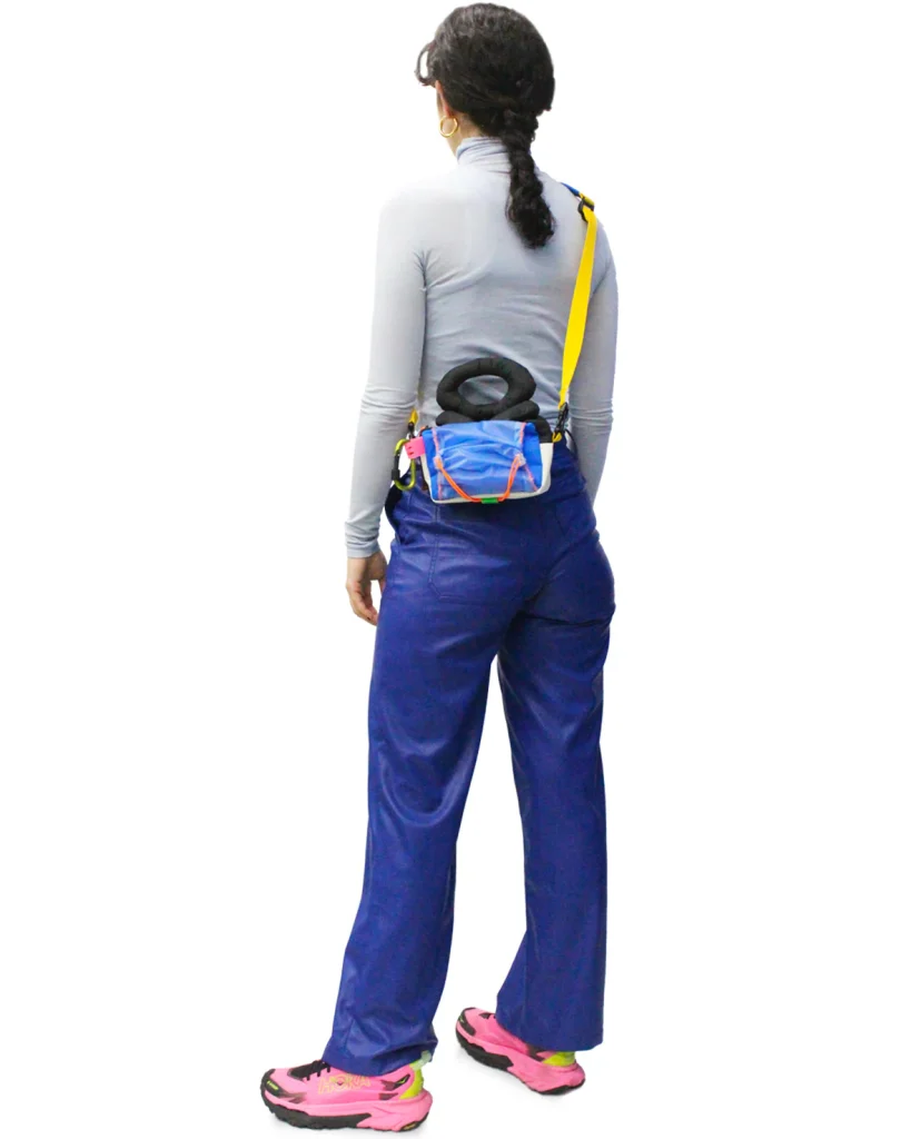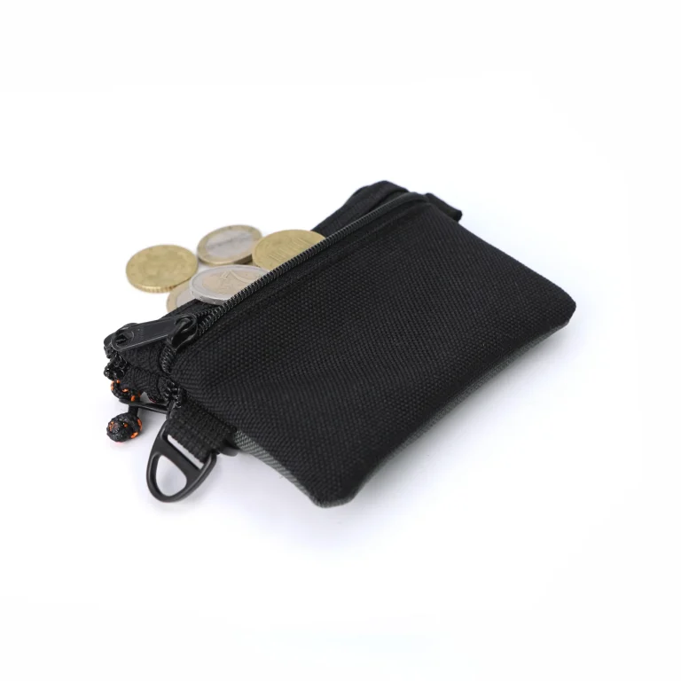 En la parte trasera, un discreto bolsillo con cremallera mantiene tus objetos esenciales seguros, mientras que el bolsillo frontal transparente —con un sistema de cierre elástico y clip ajustable— aporta un toque técnico refinado sin dejar de ser altamente práctico.