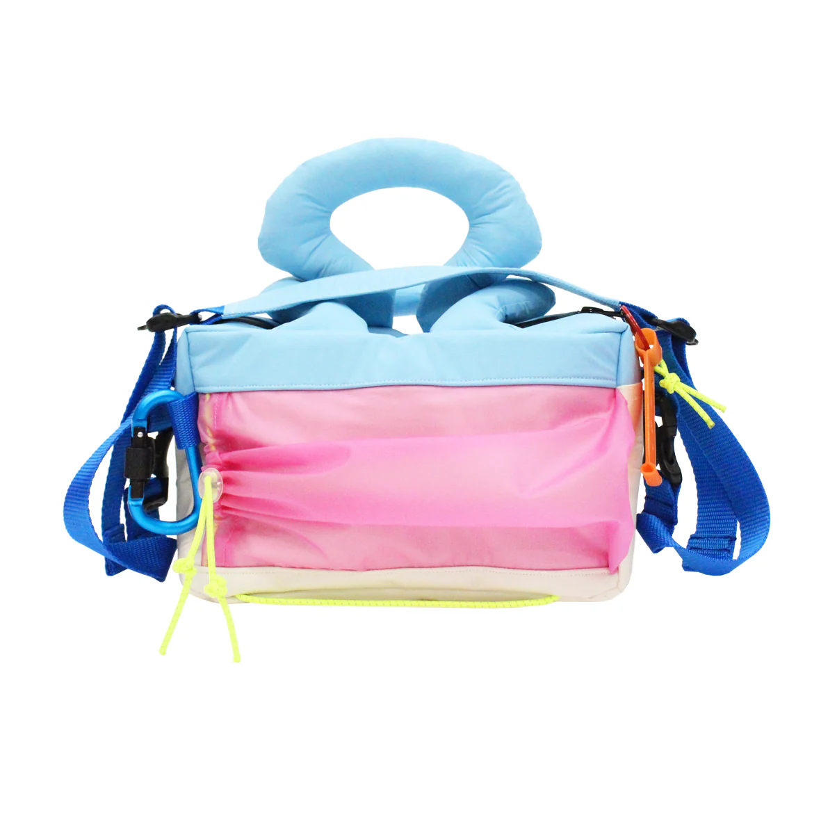 En la parte trasera, un discreto bolsillo con cremallera mantiene tus objetos esenciales seguros, mientras que el bolsillo frontal transparente —con un sistema de cierre elástico y clip ajustable— aporta un toque técnico refinado sin dejar de ser altamente práctico.