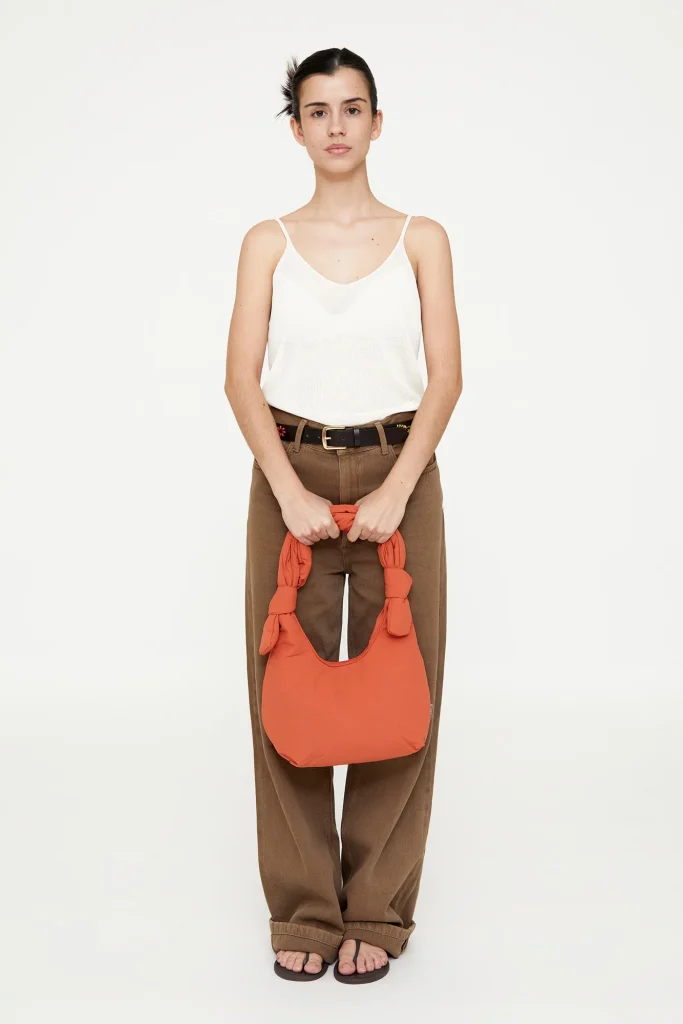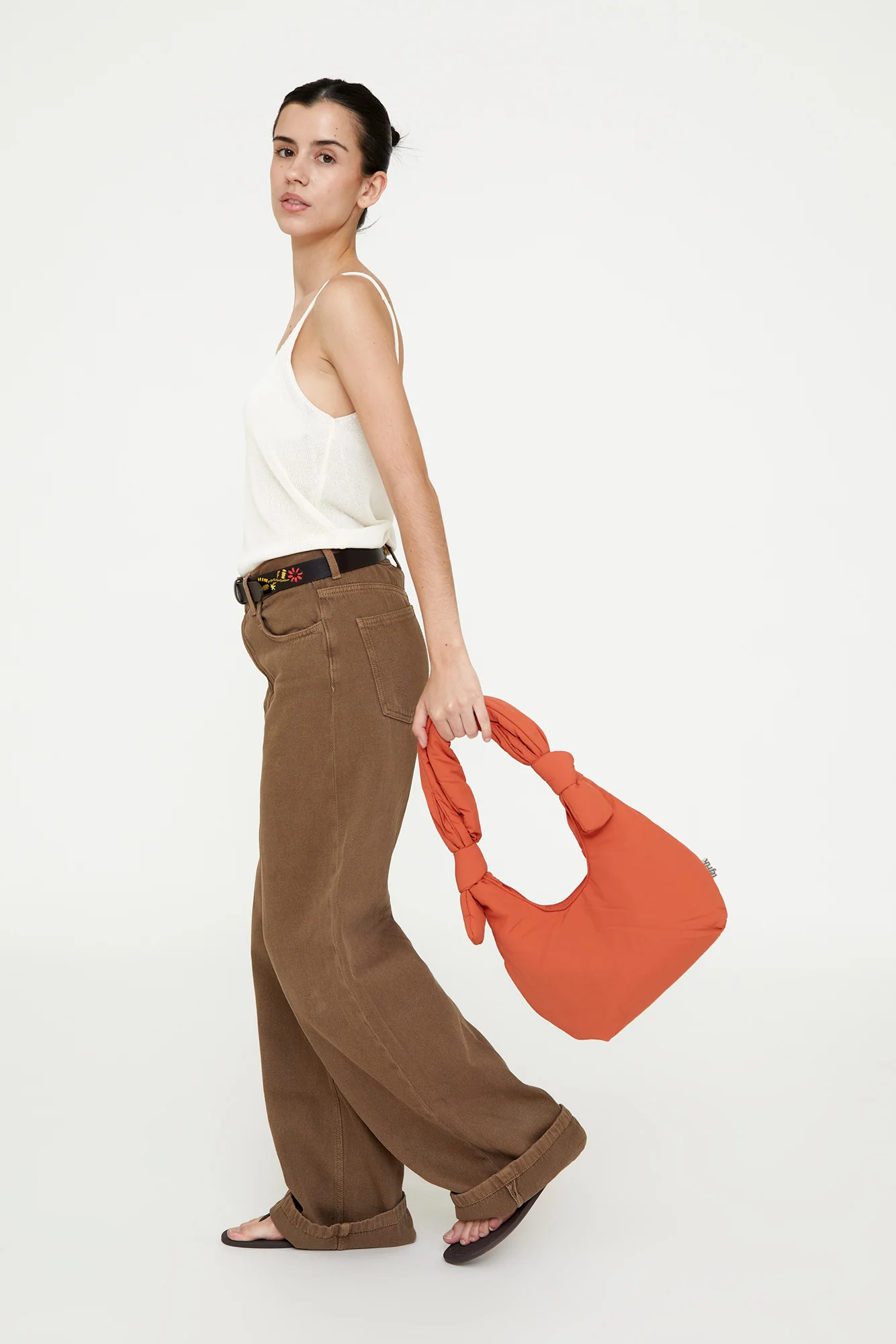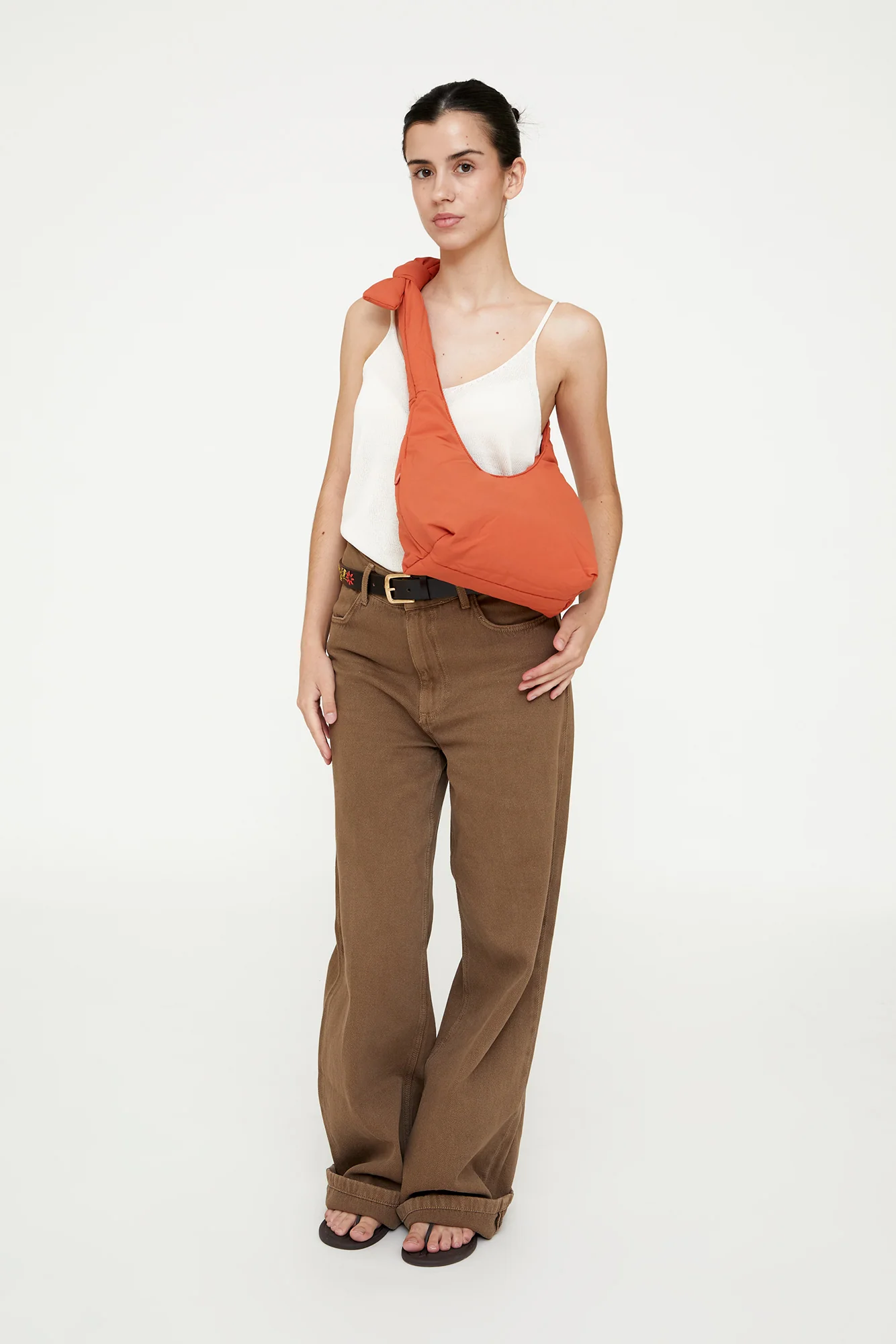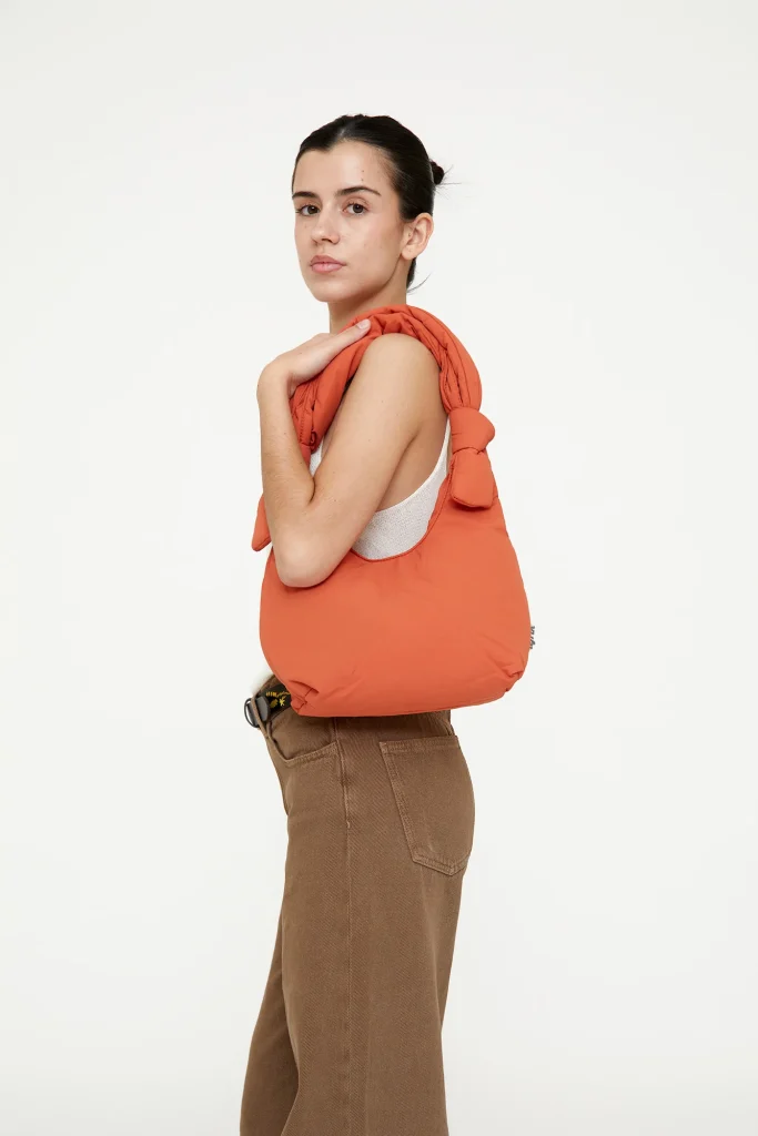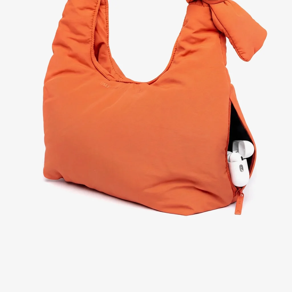 Bolso acolchado diseñado para ser utilizado tanto como bandolera como al hombro, gracias a sus lazos corredizos ajustables. Su tejido 100% hecho con poliéster reciclado y acolchado lo hacen muy ligero, suave y agradable al tacto.