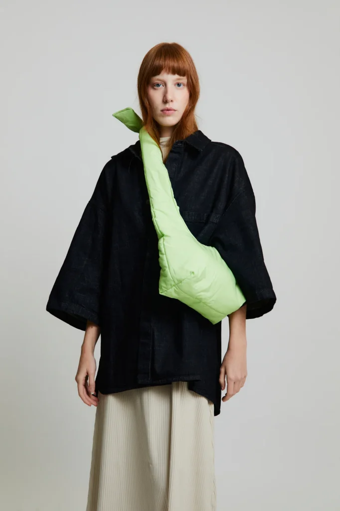Bolso acolchado diseñado para ser utilizado tanto como bandolera como al hombro, gracias a sus lazos corredizos ajustables. Su tejido 100% hecho con poliéster reciclado y acolchado lo hacen muy ligero, suave y agradable al tacto.