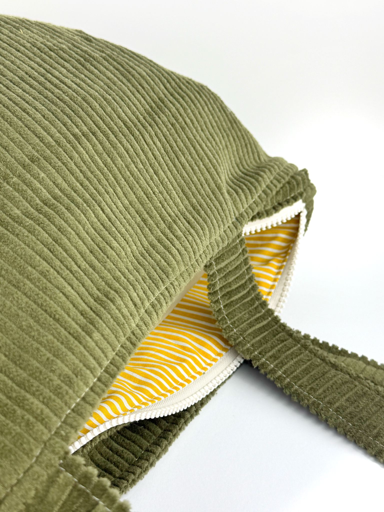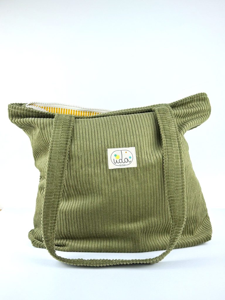 Bolso Eguzki de pana, super trotero e ideal para el día a día, con cremallera para evitar sustos y un bolsillito interno perfecto para llevar el móvil o las llaves siempre a mano. Hecho en Bilbao con mimo, es cómodo, resistente y gracias a sus asas de pana no se resbala del hombro, acompañándote sin fallar en cualquier plan.