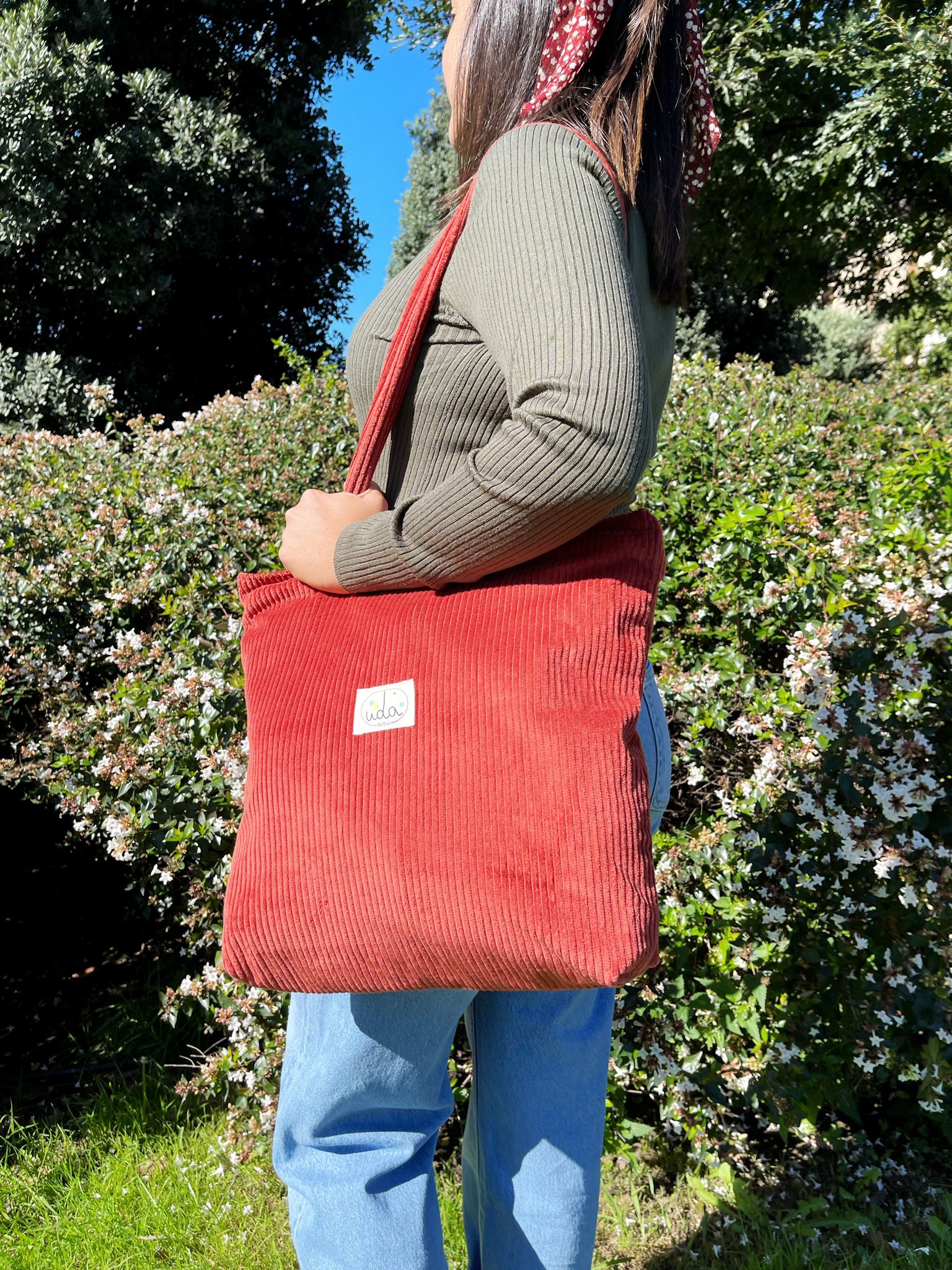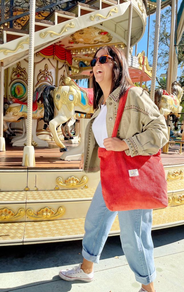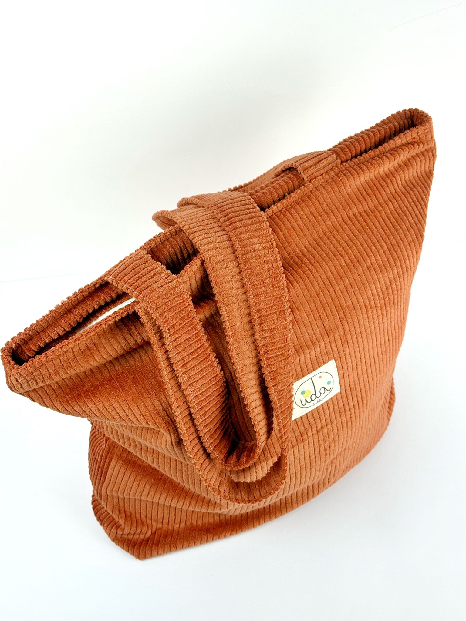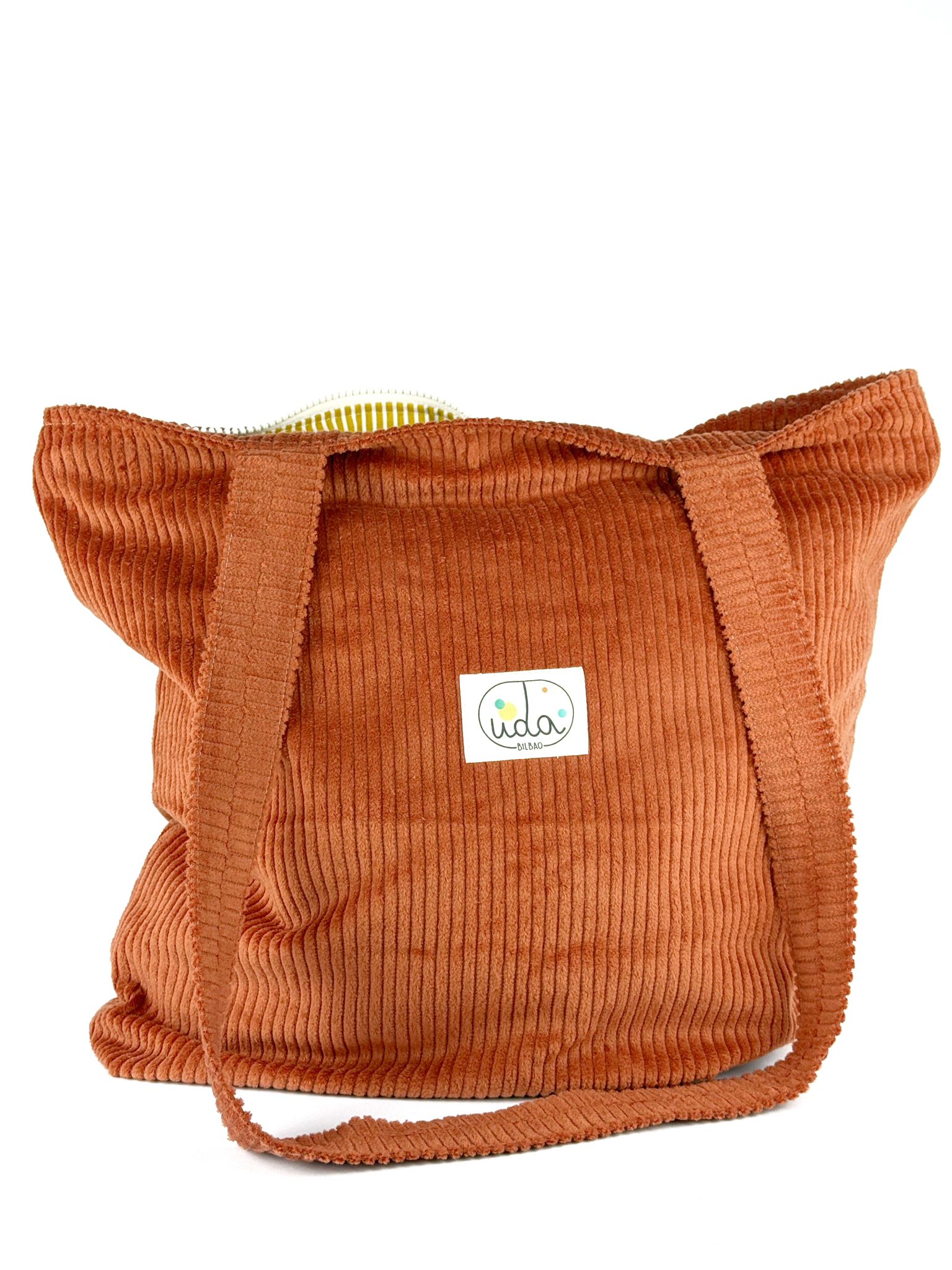 Bolso Eguzki de pana, super trotero e ideal para el día a día, con cremallera para evitar sustos y un bolsillito interno perfecto para llevar el móvil o las llaves siempre a mano. Hecho en Bilbao con mimo, es cómodo, resistente y gracias a sus asas de pana no se resbala del hombro, acompañándote sin fallar en cualquier plan.