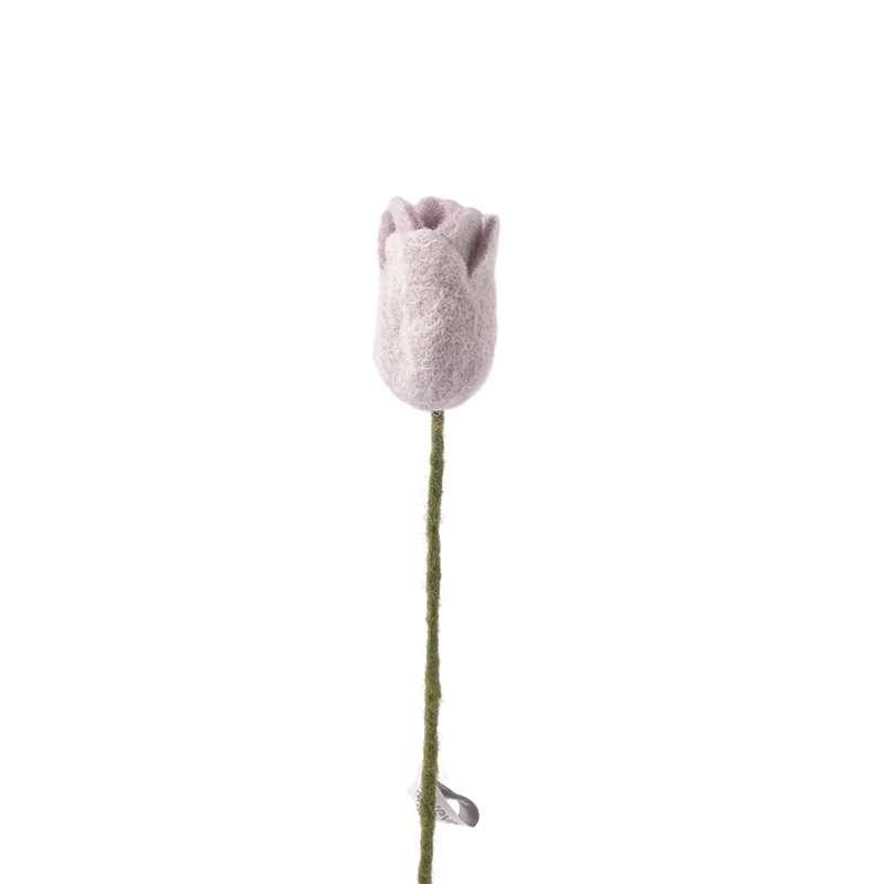 La flor Tulipán lavanda es una flor decorativa hecha a mano con lana 100% natural, que aporta un toque elegante y duradero de color lavanda a cualquier espacio, sin necesidad de cuidados.