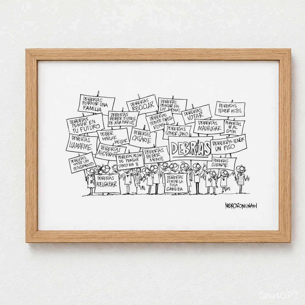 Lámina firmada a mano por Mercrominah, con su característico humor ácido y mirada crítica sobre la sociedad y las redes. Cada print es una pieza única, con la autenticidad y el estilo directo que la han hecho reconocible en redes y libros.