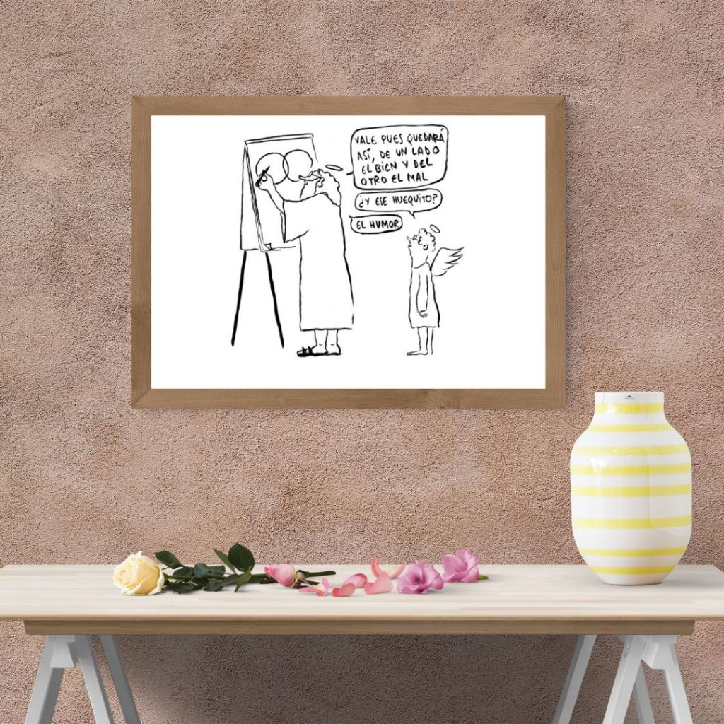 Esta ilustración combina ironía y sensibilidad e invita a reflexionar con una sonrisa. Un trazo sencillo para una mirada aguda sobre lo cotidiano.