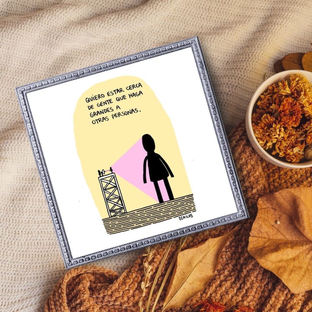 Esta lámina rinde homenaje a esas personas que, con su generosidad, apoyo y luz, hacen que quienes las rodean crezcan, brillen y se sientan más grandes. Una celebración de la bondad que impulsa a otros. Tamaño 22x22cm. Lámina impresa en papel couche mate 300grs y tintas de alta calidad. Con firma digital y con tarjeta exclusiva de 72 kilos.