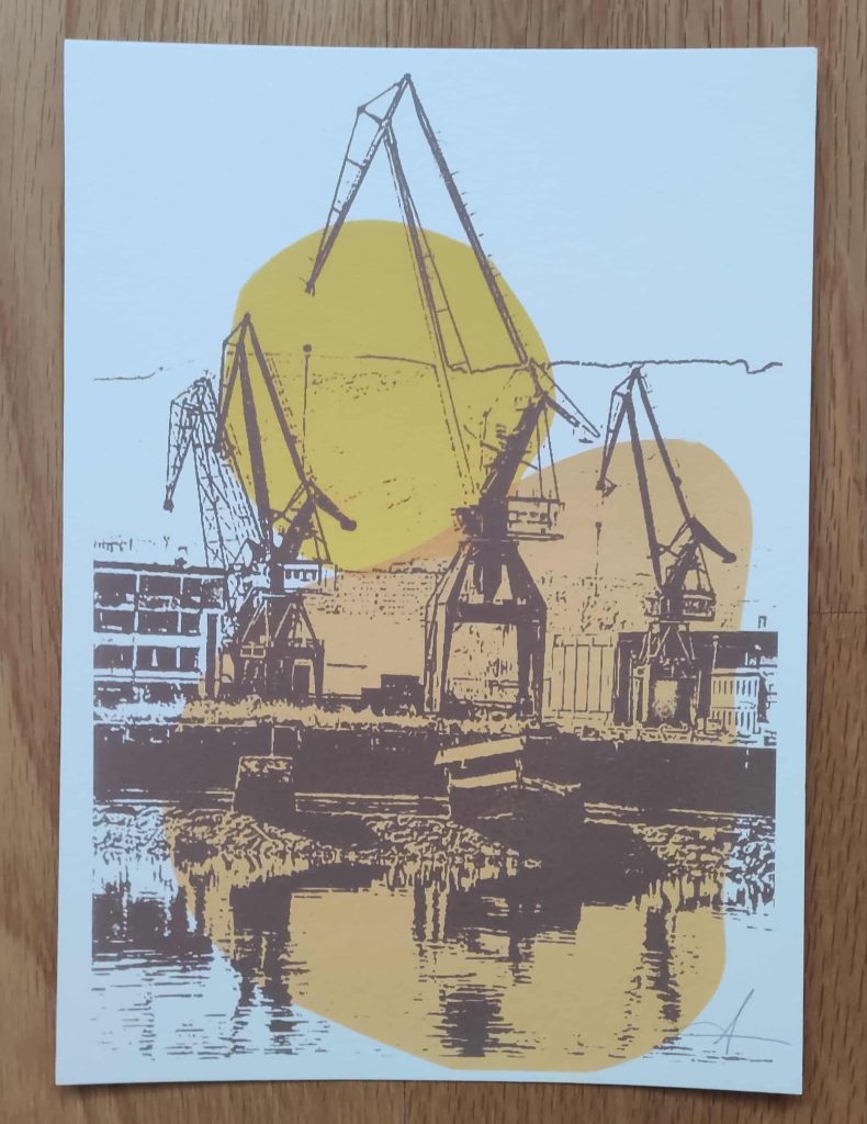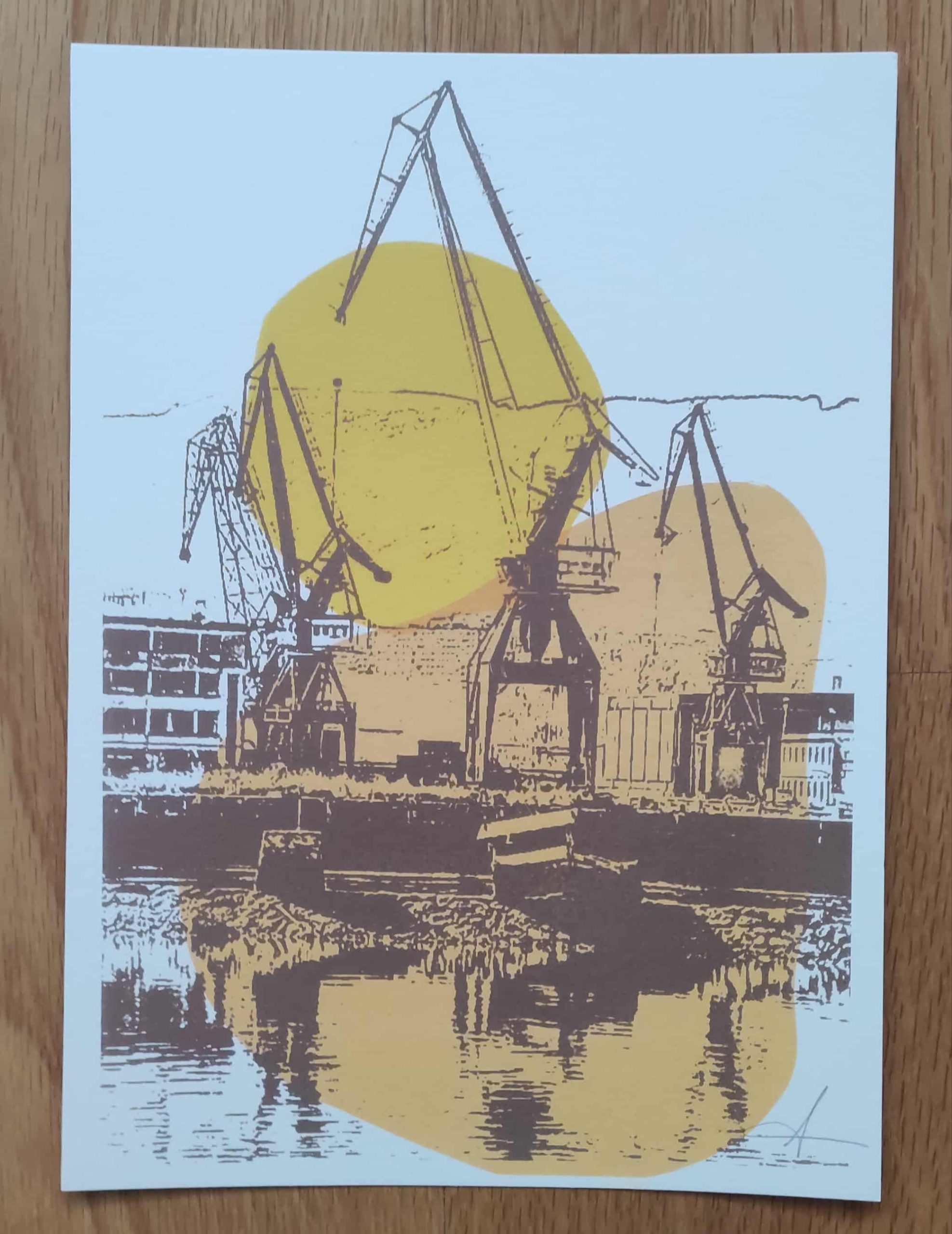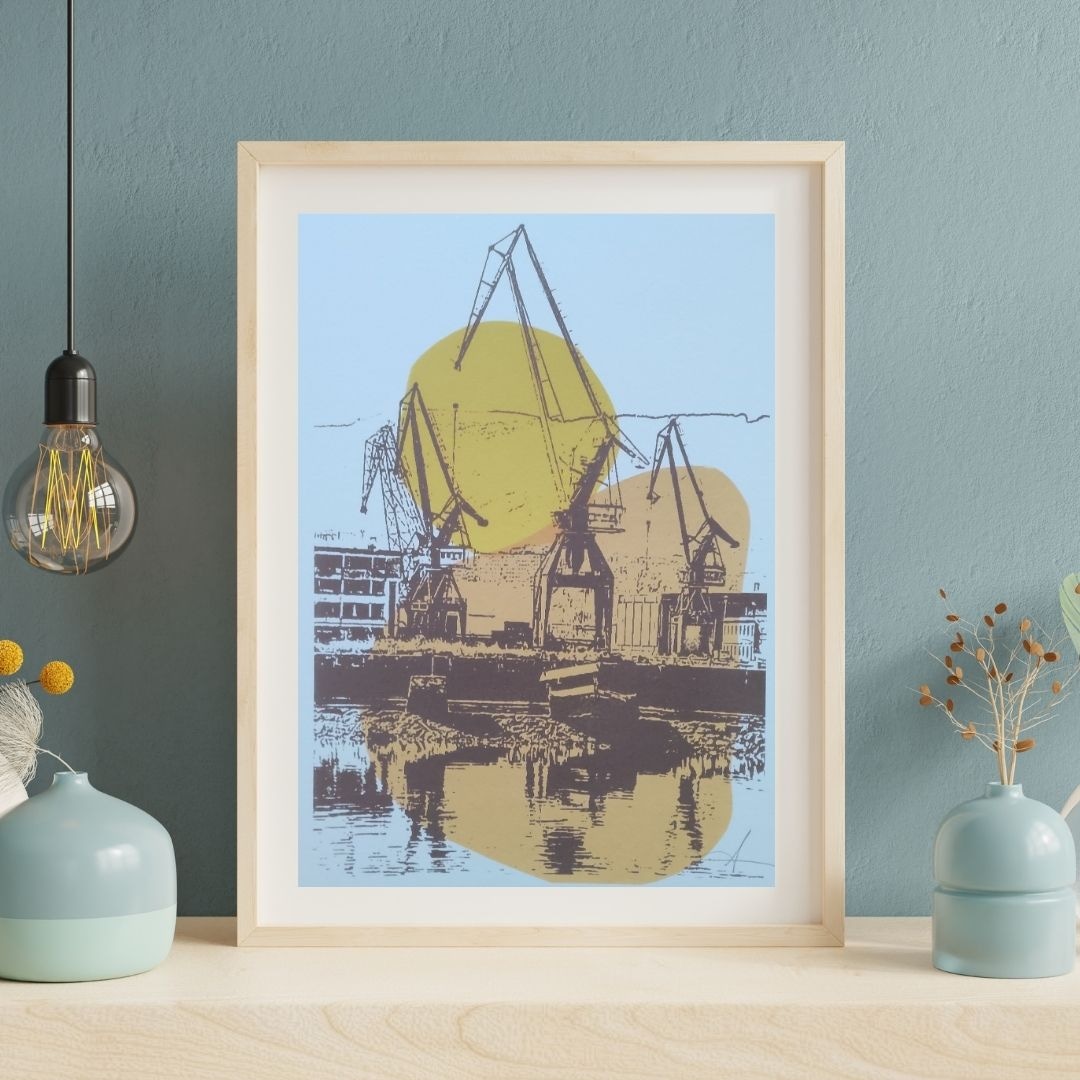 Un pedacito del pasado (y presente) industrial de Bilbo con un toque de color que hace de esta obra algo elegante y perfecto para decorar tu hogar.