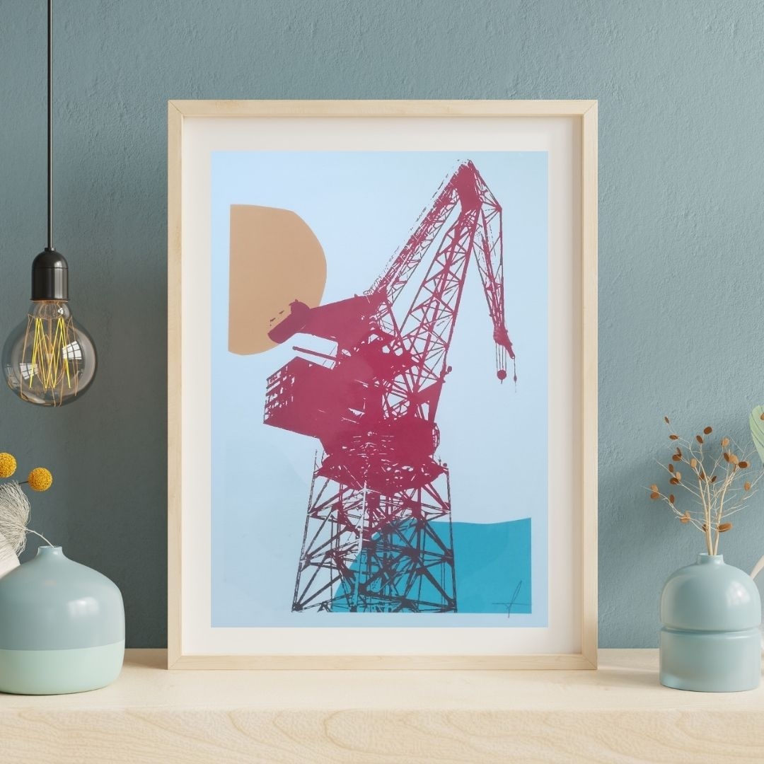 Un pedacito del pasado (y presente) industrial de Bilbo con un toque de color que hace de esta obra algo elegante y perfecto para decorar tu hogar.
