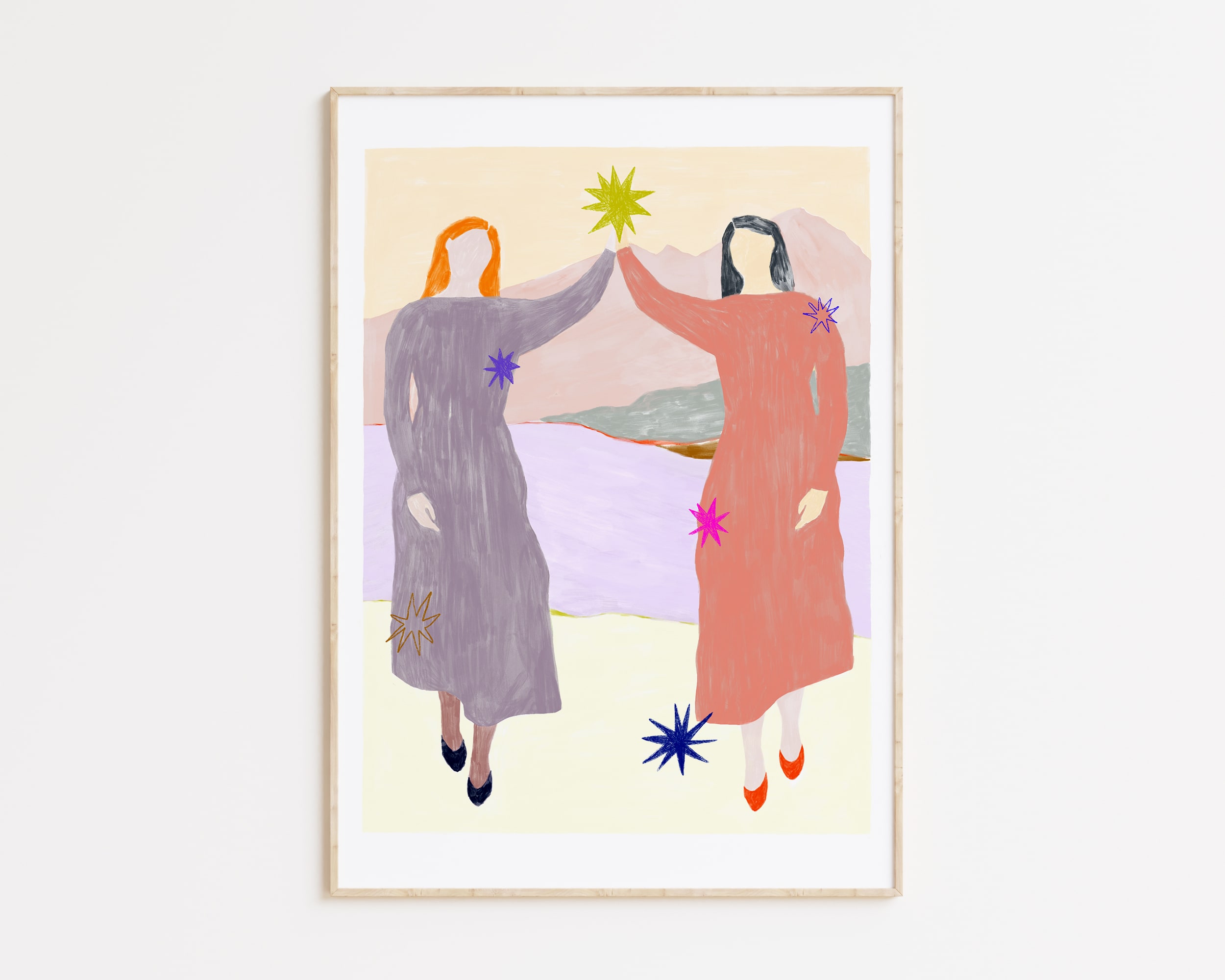 Esta ilustración artística muestra una escena mágica y femenina, perfecta para inspirar y llenar de energía cualquier rincón de tu hogar. Ideal para quienes buscan un toque de feminidad y misterio. Impresión giclée de alta calidad que asegura colores vibrantes en papel natural sin ácido de 200g con acabado mate. Impreso en España. El diseño está enmarcado por un borde blanco. El marco no está incluido.
