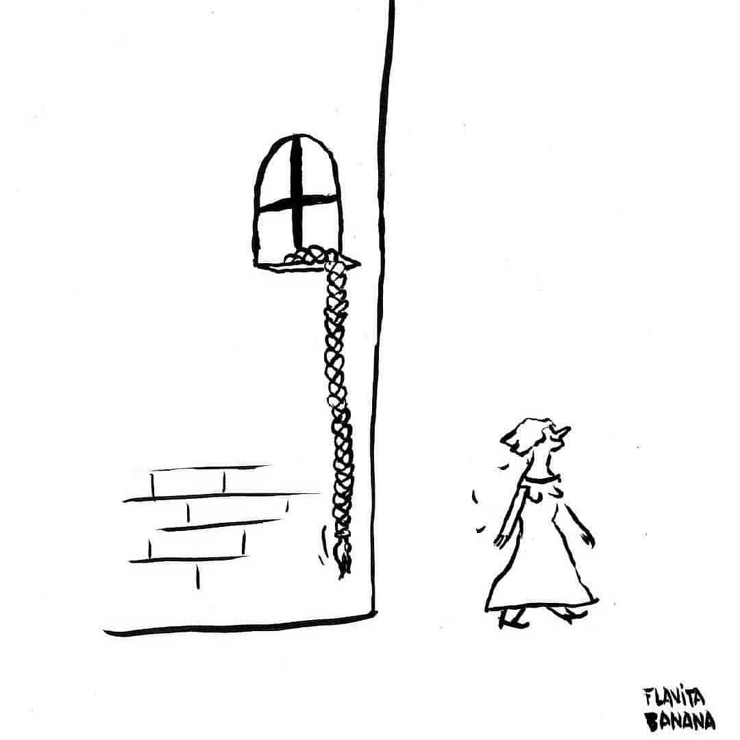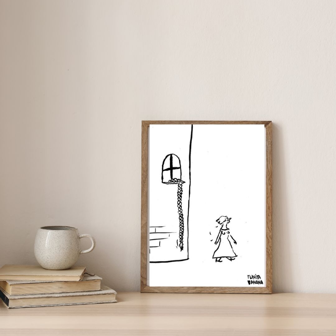 Una ilustración que reinterpreta el clásico con ironía y perspectiva contemporánea, cuestionando los roles tradicionales desde el humor y la sutileza.