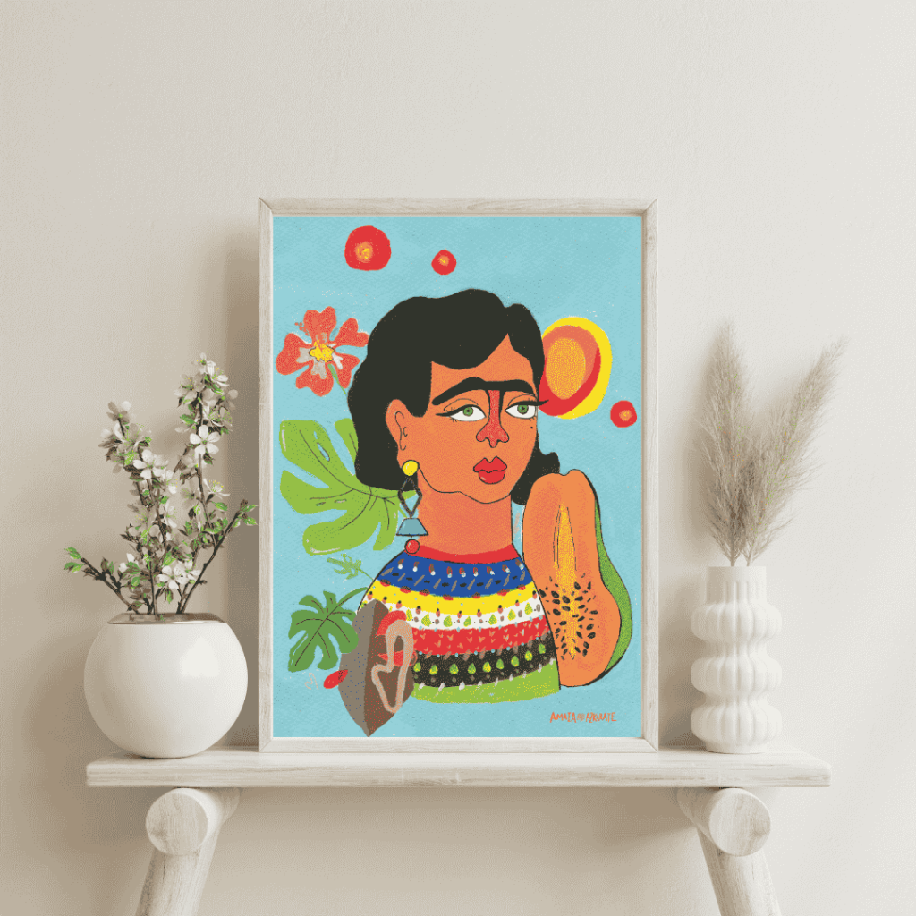 Su colección de retratos, disponible en Cabecita de Ajo, se nutre de la gente que la rodea, que a menudo se convierte en su fuente de inspiración. El resultado son piezas únicas que buscan emocionar y divertir, transmitiendo una energía luminosa que transforma la forma de ver lo cotidiano. Cada ilustración es ideal para quienes buscan rodearse de arte que no solo decora, sino que también despierta sonrisas y crea conexión emocional con la obra.