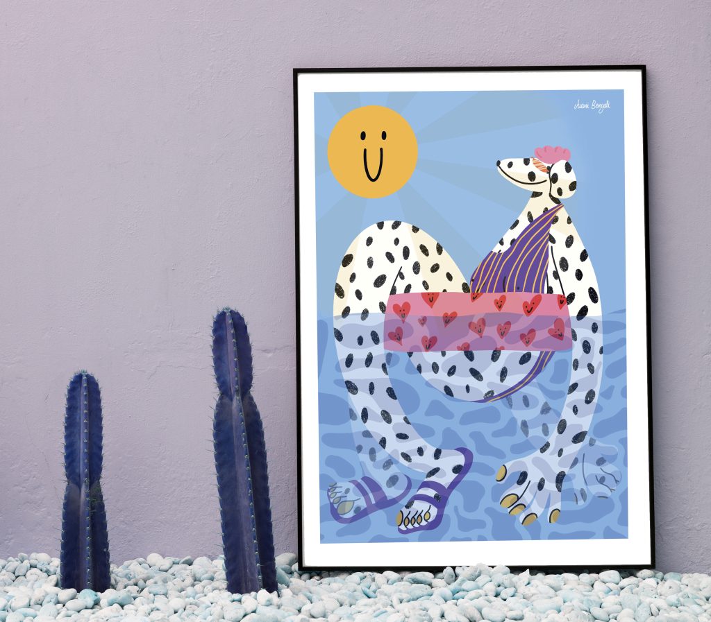 Se trata de un momento de relajación en un día de descanso o de vacaciones. La combinación de colores vivos junto con su diseño son ideales para aportar un toque divertido y colorido a tu hogar.