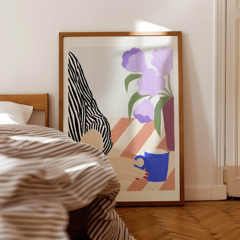 Esta lámina representa la importancia del descanso y autocuidado, aportando serenidad y un mensaje positivo en tu hogar. Perfecta para un rincón dedicado a la calma. Impresión artística de alta calidad con técnica giclée en papel natural sin ácido de 200g con acabado mate para colores duraderos y vibrantes. Impresa en España. El diseño está enmarcado con un borde blanco. El marco no está incluido.