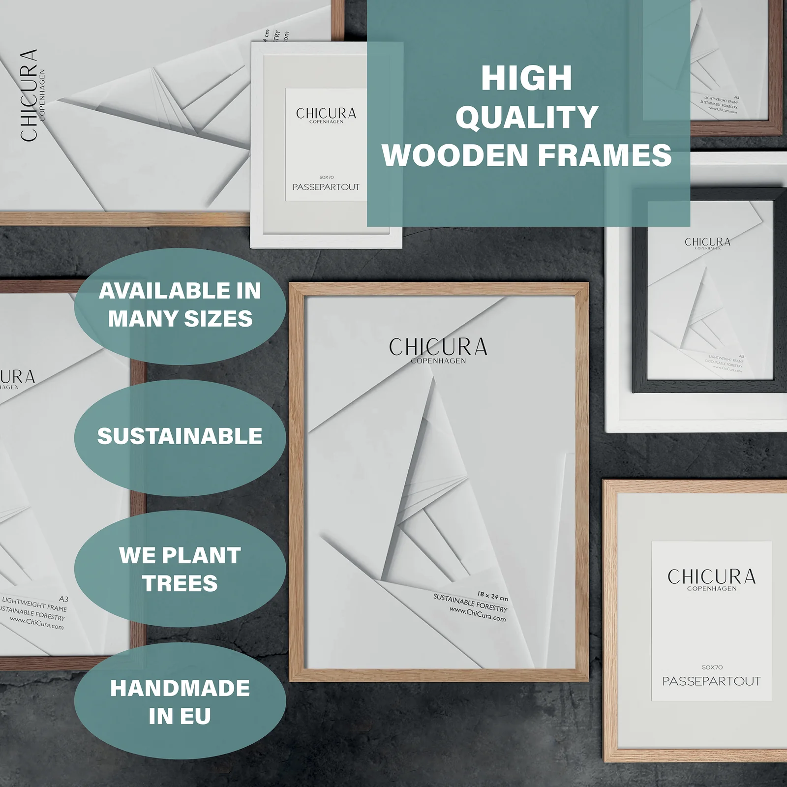 Este marco de roble en formato 50×70 cm está diseñado para realzar tus piezas artísticas con elegancia y practicidad. La madera maciza aporta calidez y resistencia, mientras que el frente de metacrilato con tratamiento anti‑reflejos permite disfrutar del contenido sin distracciones por brillos o reflejos.
