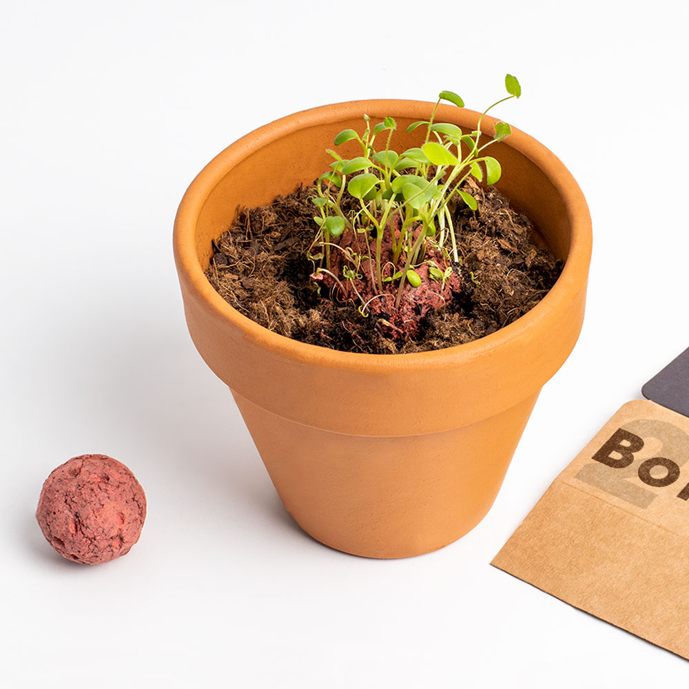 Producción artesanal, imitando la técnica japonesa Nendo Dango, que protege y facilita la germinación de semillas.