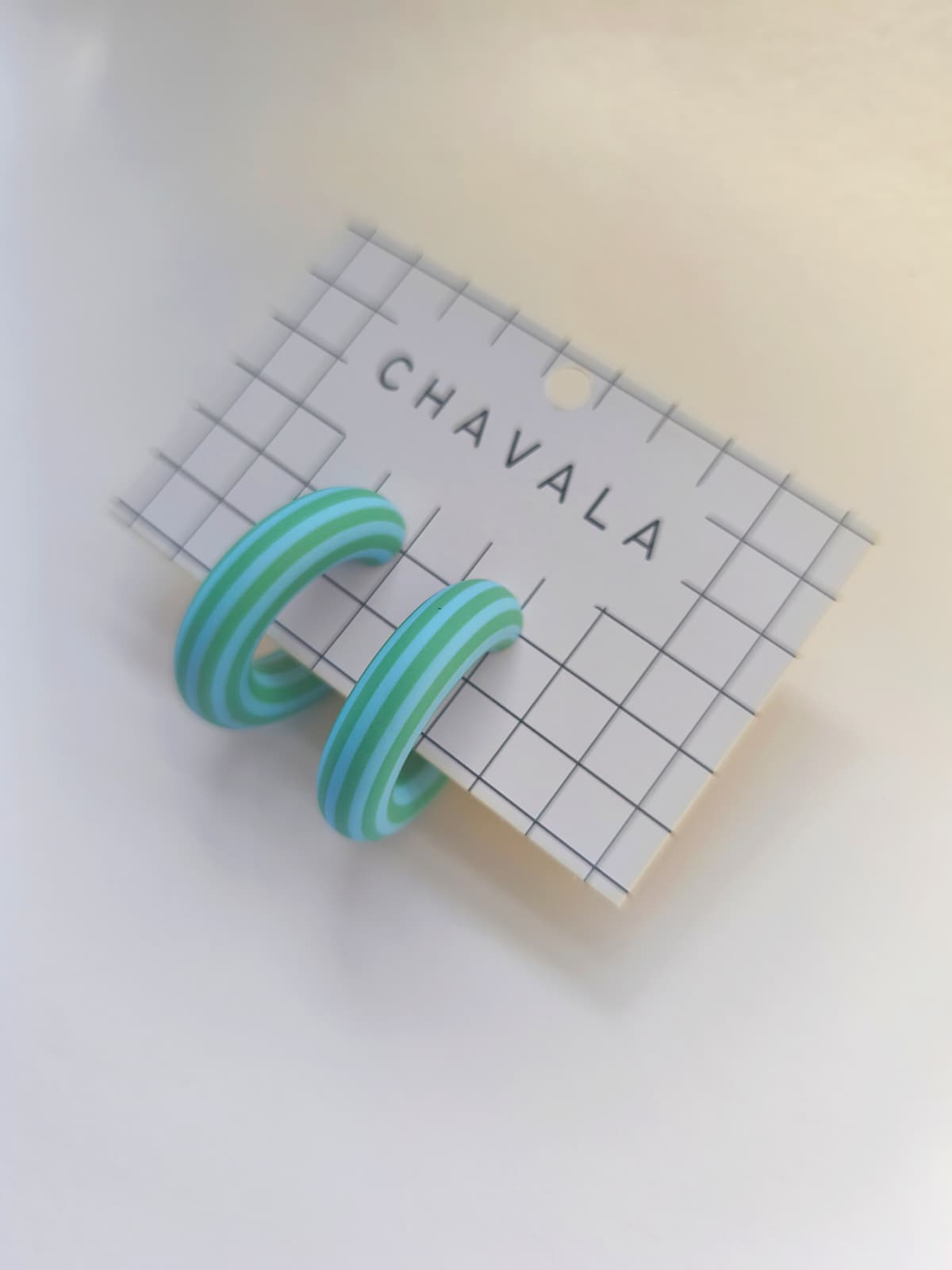 Los pendientes de aro de Chavala son una propuesta fresca y original que combina diseño artesanal con comodidad absoluta. Están modelados en arcilla polimérica y montados sobre pernos de acero inoxidable hipoalergénico, lo que los hace seguros para pieles sensibles.
