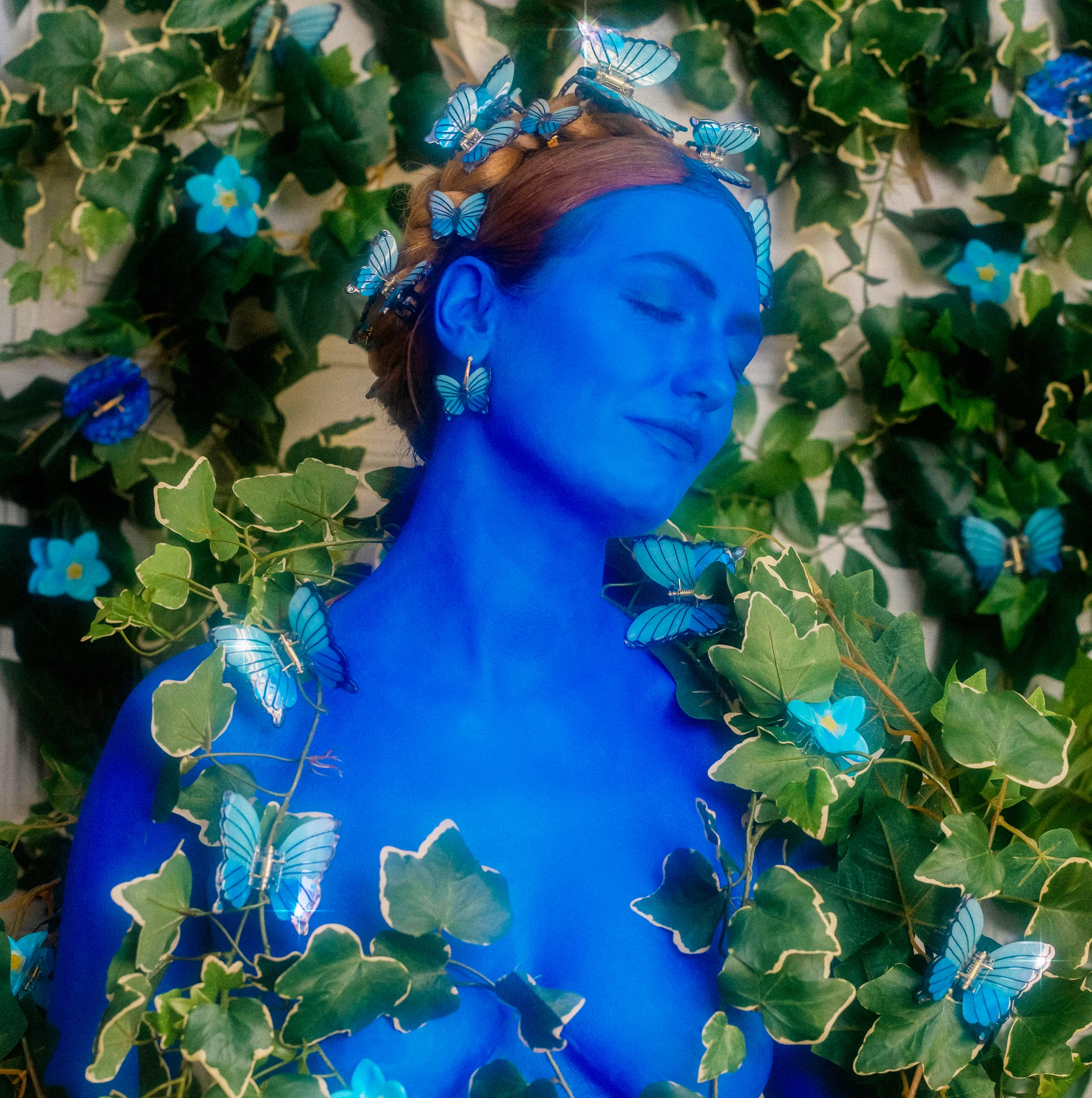 Una preciosa mariposa azul convertida en pinza de cabello lista para posarse en tu melena como en un jardín en flor.