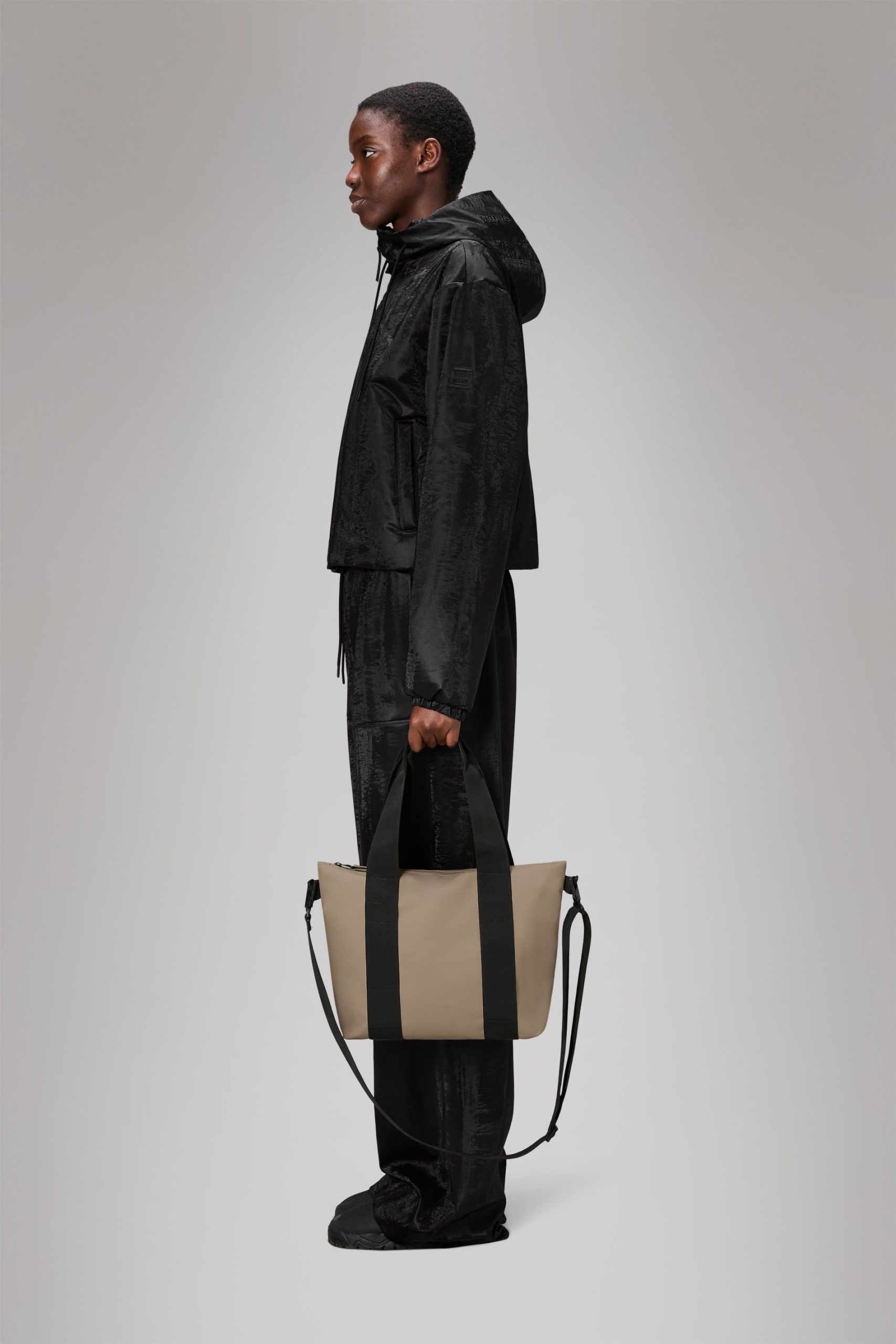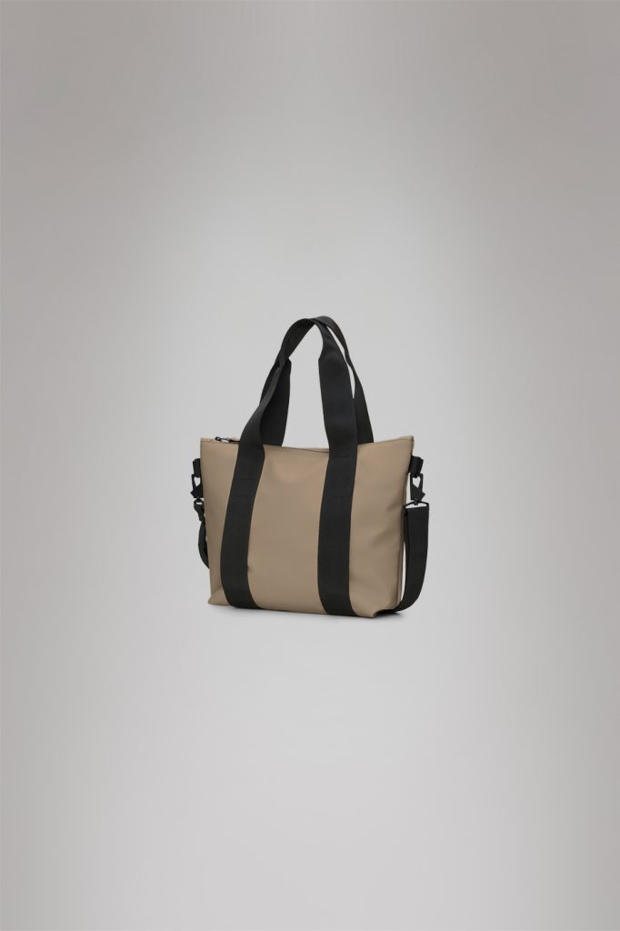 Tote Bag Mini es un bolso impermeable con diseño utilitario y detalles modernos, ideal para compras, trabajo o ciudad. Tiene un cierre de cremallera completo, un amplio compartimento principal y múltiples opciones de transporte: asas largas con anillas y correa de hombro desmontable. Fabricado en tejido PU impermeable de Rains, resistente, duradero y de tacto suave.
