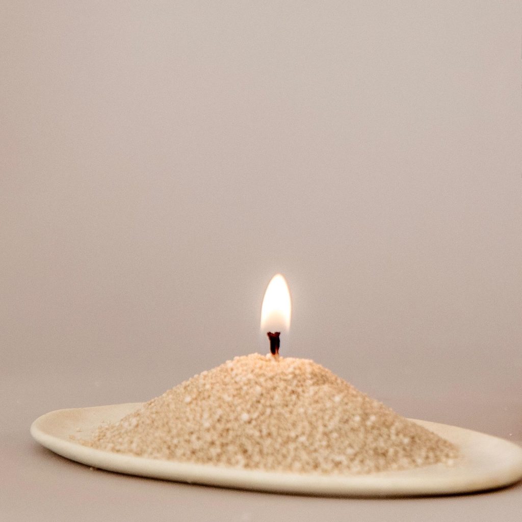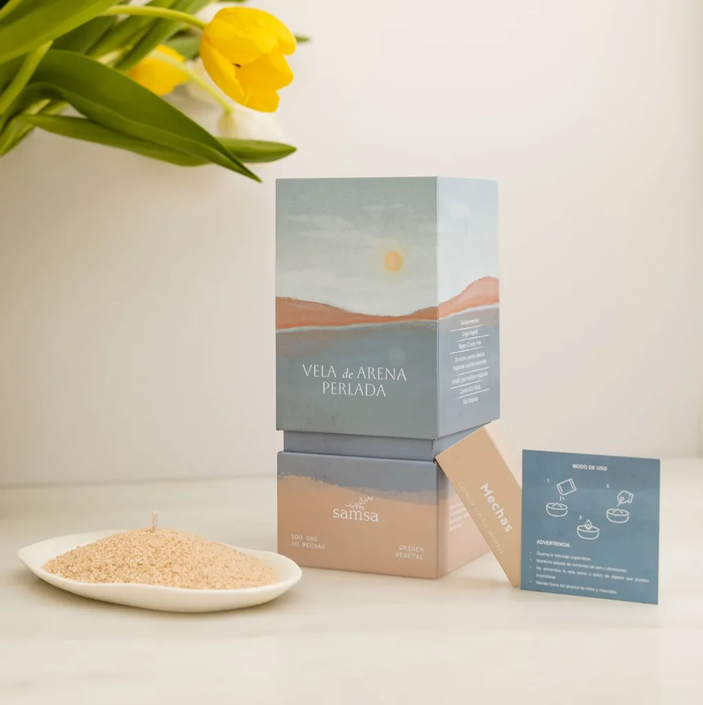 Una vela lista en menos de un minuto. La Vela de Arena te acompaña en tu ritual semanal de pausa y calma. Solo eliges tu color, montas tu vela y disfrutas. Cada día puedes empezar de cero.